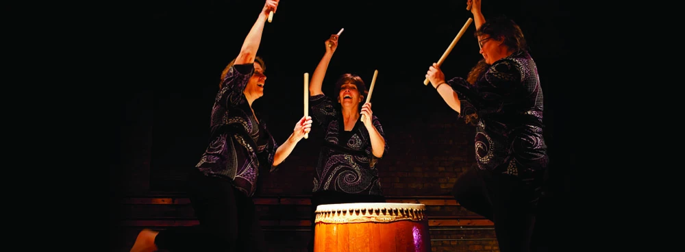 Taiko is a traditional Japanese musical tradition that means “big drum.” The large, hollow, skin-covered drums used in taiko are played vertically, horizontally or diagonally to create a range of vibrant rhythms. But taiko isn’t simply about sound. Its characteristic beat is achieved through choreographed arm movements, as drummers “dance” their sticks from drum to drum.