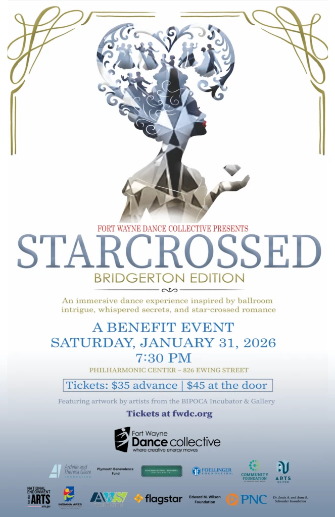 Experience a Bridgerton-inspired immersive event at the beautiful Philharmonic Center. Move through the space and interact with FWDC dancers as you follow an unfolding story inspired by Bridgerton, the hit Netflix series and beloved book series known for its romance, drama, and scandal in Regency-era England. Period costuming is welcome but not required. Light hors d’oeuvres will be served and a cash bar will be available. Mystery and intrigue await. Don’t miss this unforgettable evening in support of an incredible organization, featuring the musicians of the Fort Wayne Philharmonic.